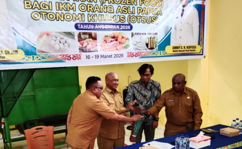 Biak, Papuautaranews -Bupati Biak Numfor, Papua Markus Octovianus Mansnembra membuka pelatihan olahan ikan frozen bagi pelaku usaha industri kecil menengah orang asli Papua (OAP), Senin.